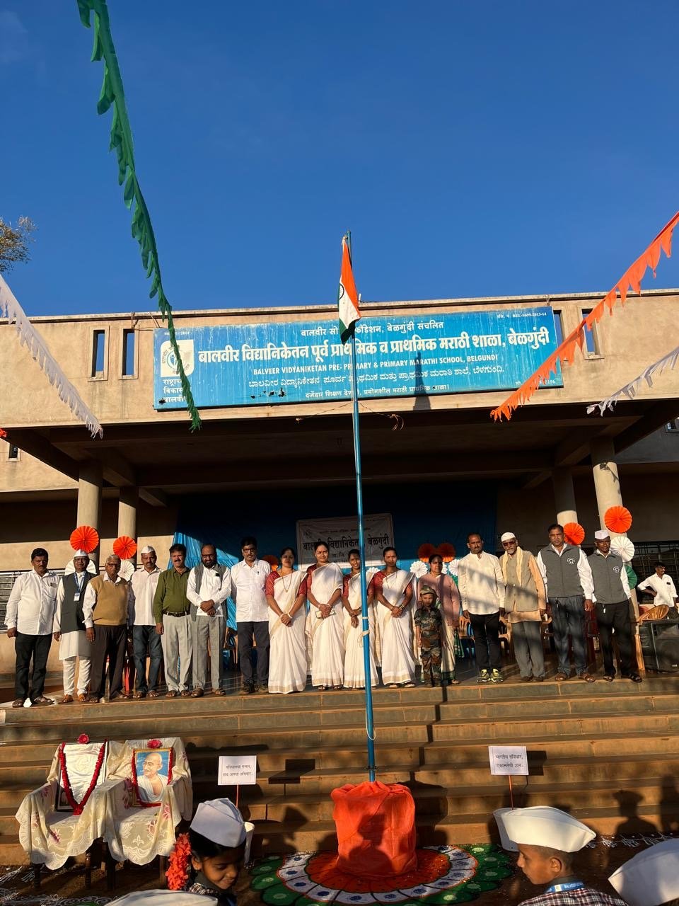 बेळगुंदी येथील बालवीर सोशल फौंडेशन संचलित बालवीर विद्यानिकेतन बेळगुंदी शाळेमध्ये 76 वा प्रजासत्ताक दिन साजरा करण्यात आला. भारतीय सैन्य दलात हवालदार पदी असलेले ढेकोळी गावचे जवान मा. श्री. वैजनाथ जानबा शिंदे सर यांच्या हस्ते ध्वजारोहण करण्यात आले प्रारंभी शाळेचे संयोजक मा. श्री शंकर चौगुले सर व बालवीर महिला अर्बनच्या अध्यक्षा रिता बेळगावकर यांच्या हस्ते डॉ. बाबासाहेब आंबेडकर व राष्ट्रपिता महात्मा गांधीजी यांच्या प्रतिमेला पुष्पहार अर्पण करून आदरांजली वाहण्यात आली त्यानंतर प्रमुख अतिथी व उपस्थित व्यासपीठावरील मान्यवरांना शाळेच्या विद्यार्थ्यांनी पथसंचलन करून मानवंदना दिली त्यानंतर विद्यार्थ्यांनी भाषणे व देशभक्तीपर गीते सादर केली.निवृत्त मुख्याध्यापक अर्जुन चौगुले सर तसेच प्रमुख अतिथी वैजनाथ शिंदे सर ,̤ कार्यक्रमाचे अध्यक्ष शंकर चौगुले सर यांनी आपल्या भाषणातून विद्यार्थ्यांना प्रजासत्ताक दिनाचे महत्त्व समजावून सांगितले व्यासपीठावर बालवीर अर्बनचे अध्यक्ष आनंदा जाधव ,उपाध्यक्ष राजू मुजावर ,संचालक सुभाष हदगल, परशराम झंगरूचे दशरथ पाऊसकर, माझी ए पी एम सी अध्यक्ष अप्पा जाधव तसेच बालवीर महिला सोसायटीच्या अध्यक्षा रिता बेळगावकर, बिस्मिल्ला तहसीलदार वनिता गवंडी , रामाक्का पाटील, कुसुम चौगुले, तसेच प्राथमिक विभागाच्या मुख्याध्यापिका रेखा शहापूरकर, माध्यमिक विभागाच्या मुख्याध्यापिका मंगल पाटील ,सुनील जाधव सर आदी व्यासपीठावर उपस्थित होते तसेच कार्यक्रमाला माजी दहावी बॅचच्या विद्यार्थिनी, शिक्षक, विद्यार्थी व पालक मोठ्या संख्येने उपस्थित होते कार्यक्रमाचे सूत्रसंचालन हेमा पटवर्धन यांनी केले तर अतिथींचे स्वागत व ओळख प्रकाश मेटकर यांनी करून दिले व आभार पूजा पाटील यांनी मानले.