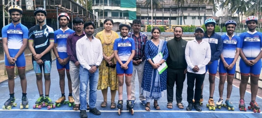 सार्वजनिक शिक्षण खाते पी यू बोर्ड बेळगावी गोपाळजी इंटिग्रेटेड पी यू कॉलेज ऑफ कॉमर्स अँड सायन्स आणि बेळगाव जिल्हा रोलर स्केटिंग असोसिएशनचा वतीने आयोजित 19 वर्षाखालील पी यू बोर्ड l आणि ll गेम्स जिल्हा रोलर स्केटिंग चॅम्पियनशिप आणि निवड चाचणी 2025 शिवगंगा स्पोर्ट्स क्लब स्केटिंग रिंक बेळगाव येथे पार पडली याचॅम्पियनशिपमध्ये40+ स्केटिंगपटूंनी सहभाग घेतला होता या निवड चाचणीने उद्घघाटन गोपाळजी इंटिग्रेटेड पी यू कॉलेज ऑफ कॉमर्स अँड सायन्स च्या प्रिन्सिपल भारती रांगणेकर यांच्या शुभ हस्ते झाले यावेळी कॉलेज स्पोर्ट्स इन्चार्ज महेंद्र पाटील आणि भाऊबली बाबनवर, स्टाफ अश्विनी कलमणी सुनील सुनगार, संतोष कागीनावर , महेश भजंत्री,वीणा नायक स्केटिंग प्रशिक्षक सूर्यकांत हिंडलगेकर , ऋषीकेश पसारे, सोहम हिंडलगेकर स्केटर्स व पालक मोठ्या प्रमाणात उपस्थित होते.