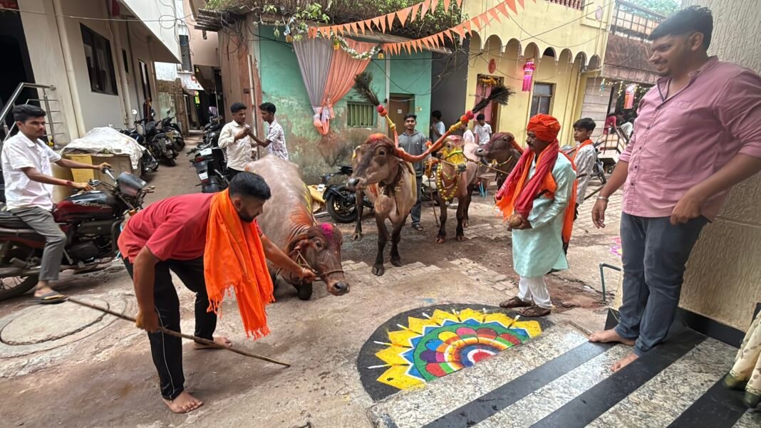 तसेच सजवलेल्या म्हशीना गाडीच्या मागे पळवत चव्हाटा मंदिराभोवती फिरविन्यात आले . तसेच या ठिकाणी उपस्थित असलेले युवकांनी देखील या क्षणाचा आनंद लुटला.