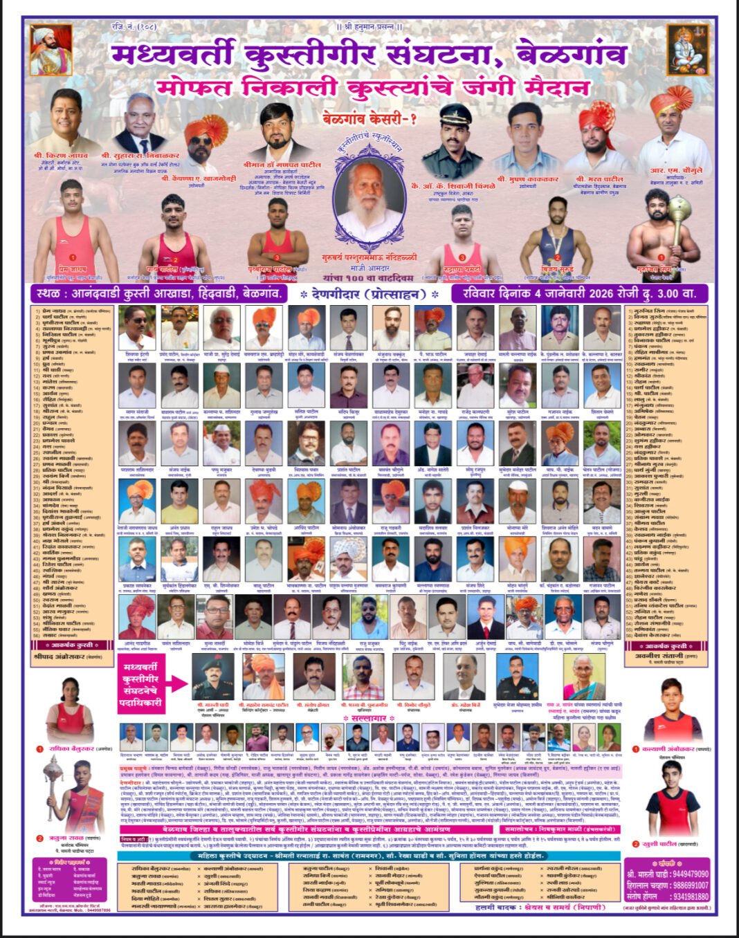 होणाऱ्या भव्य कुस्ती मध्ये भाग घेणाऱ्या बेळगाव जिल्यातील सर्व कुस्ती पटुनी आपले नाव नोंद करावे असे आव्हान करण्यात आलेले आहे